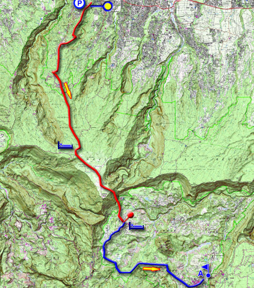 Cette longue traversée peut représenter les deux premières étapes d'une traversée de l'île. En fonction de l'entraînement, deux possibilités de couchage sont proposées : le gîte de la Plaine des Chicots ou Grand Îlet. Bien étudier le trajet en fonction de ses capacités pour choisir son lieu d'hébergement. Dans les deux cas, une des journées sera plus longue que l'autre. Dans le cas d'un gîte à Grand Îlet, comme sur le profil ci-contre, la première journée sera très difficile et la seconde un vrai repos. Le circuit de 38.5 km en quelques chiffres Première étape : 23 Km - D+ 2200 m - de 8 à 9 heures de marche Deuxième étape : 15.5 Km - D+ 300 m - de 5 à 6 heures Premier jour : Se rendre à la Providence au départ du très fréquenté sentier Mercure qui permet aux dionysiens de s'entraîner en montant au Brûlé. On quitte les grands palmiers royaux pour débuter la montée par le sentier botanique sur de grosses pierres. Ces pierres seront présentes une bonne partie de la montée, entrecoupées de parties terreuses. On profite de quelques points de vue sur le chef-lieu puis on passe devant un kiosque. La végétation est assez pauvre et comporte beaucoup de chocas. Des panneaux sous forme de triptyques présentent succinctement la végétation du lieu. Poursuivre sur le GRR2 marqué de rouge et blanc en passant sous le couvert des arbres qui deviennent de plus en plus grands. Les cailloux diminuent mais sont remplacés par les racines constamment piétinées de ces grands arbres. Certaines racines sont dignes de la jungle. On longe une piste par deux fois durant l'ascension. Plus haut ce seront de gros filaos qui borderont le parcours. Le sentier effectue un détour vers l'est pour franchir deux petites ravines, affluents de la Ravine du Butor. Après une petite plantation d'araucarias suivie d'une autre d'eucalyptus, le passage s'effectue entre des dizaines de grosses touffes de bambous qui vont jusqu'à créer des tunnels qui cachent de la lumière. La fin de la montée est proche pour rejoindre le Brûlé. La montée vers Mamode Camp s'effectuera en partie sur route, en partie sur quelques sentiers de raccourcis. Autant avoir la carte en main pour les dégoter. Laisser plus haut la route de la Cascade Maniquet et continuer jusqu'à l'aire de pique-nique de Mamode Camp. Après avoir passé un très gros kiosque et son barbecue, entamer la montée sous les cryptomerias pour 1000 m d'ascension jusqu'à la Roche Ecrite. On débute sur des marches bien aménagées, qui, à voir les raccourcis créés par les gens pressés, servent de moins en moins. Le sentier de Mamode Camp est le plus employé pour atteindre le sommet. Il est donc toujours de bonne qualité. Tous les types de sentiers sont représentés : portions boueuses, empierrées, avec marches ou sur planches pour isoler des parties les plus humides. Les longoses sont partout mais ne bouchent pas le passage. On passe de beaux tronçons parfois glissants et on rencontre des goyaviers, puis les premiers tamarins et de belles touffes de calumets. Quand les tamarins deviennent les plus nombreux on approche du gîte qu'on rejoint par quelques raidillons. La première journée peut se terminer ici. Sinon, reprendre la montée qui passe dans des landes plus ou moins touffues traversées par un sentier recouvert d'herbe courte. Certains tronçons sont très caillouteux et cassent le rythme. Mais ce sont les plaques de basalte qui se multiplient jusqu'à devenir le principal lieu de marche, recouvert de dizaines de tâches de peinture blanche. Après plusieurs embranchements de sentiers, on arrive au sommet pour profiter des points de vue exceptionnels sur les cirques. La dernière montée peut s'éviter si on connait ou que la fatigue arrive. Dans ce cas, partir vers le rempart est et entreprendre la difficile descente vers Grand Îlet. La pente est parfois très forte et il faut dès le départ éviter de compter les lacets. Cette pente qui sert de compétition au Kilomètres Vertical laisse en général de très bons souvenirs à certains muscles qui se reposaient dans la longue montée. Une fois sur la route de la Mare à Martin, prendre à droite et rejoindre Grand Îlet pour un repos bien mérité. Le lendemain, remonter par Casabois vers le Bélier en marchant sur la route car il n'y a pas de sentier officiel. Partir à gauche vers la chapelle abandonnée et débuter la descente du GRR1 en direction de Camp Pierrot et Grand Sable en traversant les plantations sauvages de chouchous. Le GR monte et descend sans cesse au gré du relief ou des petites ravines à franchir. Les filaos deviennent de plus en plus nombreux et la marche peut s'avérer glissante sur les tapis d'aiguilles. Après une descente, le sentier longe des cultures de Camp Pierrot puis se transforme en une large piste. Reprendre le sentier à la fin de la piste et rejoindre la Rivière des Fleurs jaunes par de nouveaux lacets glissants. La traverser à gué et poursuivre jusqu'au gué de la Ravine Grand Sable. Après une montée raide, on entame une longue traversée de la forêt de filaos par une piste assez large en moyenne qui passe au plus près de l'abri de l'ONF. La jonction avec l'îlet de la Mare d’Affouches s'effectue d'abord sur piste puis sur un sentier en descente dans les herbes. Après l'îlet, suivre simplement la piste jusqu'à la passerelle sur la Rivière du Mât. Traverser, remonter à la route de Bras Marron et regagner Hell Bourg par la route, puis, vers la fin, en coupant par les Anciens thermes.