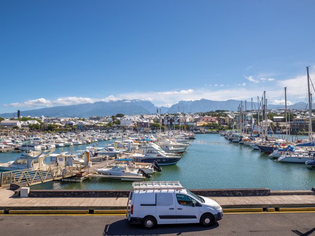 Se rendre à Saint-Pierre et rejoindre le front de mer. Le port se remarque de loin en raison des mâts des voiliers qui dépassent.