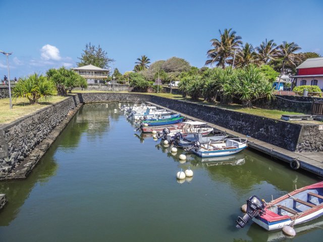 Ce bassin de radoub, creusé dans le basalte dans les années 1880 n'a pas eu beaucoup l'occasion de servir. C'est d'ailleurs sur les quais du port qu'on aperçoit actuellement les bateaux sur béquilles, attendant des travaux d'entretien. Construit pour qu'il se vide avec les marées, on déchanta très vite car la hauteur d'eau varie extrêmement peu et il fallut installer des pompes. L'endroit a dont été aménagé d'un ponton le long du mur immergé et il est naturellement utilisé comme port. Les barques et petits bateaux de pêche y passent une bonne partie de leur vie. Des années de travaux ont été nécessaires pour l'édification du port actuel de Saint-Pierre et plus tard de ce bassin de radoub. Hélas, le port ne pouvant accueillir que des navires d'un tirant inférieur à 4,5 m, c'est celui de la Pointe des Galets au Port qui, très vite, recevra les gros tonnages, signant le déclin du port mais fort heureusement pas sa fin puisqu'on peut encore y voir des multitudes de voiliers ou de barques de pêcheurs.