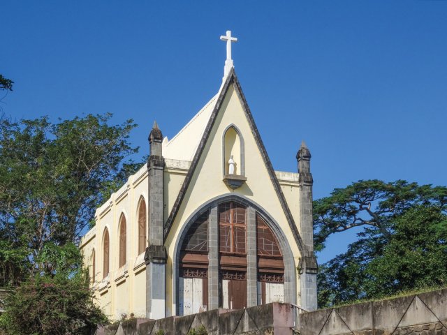 Se rendre à Sainte-Marie et se rapprocher du bord de mer. Stationner près du rond-pont de la Ravine Charpentier. On aperçoit alors la chapelle qui surplombe le rond-point.