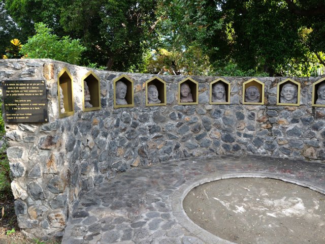 Eteignez dans les cœurs les feux de la vengeance ! Cet extrait du texte gravé sur la plaque comportant près de deux-cents prénoms rappelle la révolte des esclaves de la capitale de Bourbon à l'époque. Un monument semi-circulaire édifié en pierre de taille comporte 10 niches et 10 têtes sculptées de condamnés à mort après la révolte durement réprimée. Trois frères de la propriété Hibon (Elie le meneur principal, Gilles et Prudent) prennent la tête de la seule révolte recensée dans l'île durant la longue période de l'esclavage. Les récits divergent sur le déroulement de cette révolte mais le résultat est le même : 25 condamnations à mort parmi les révoltés et très peu de grâces. Des fresques ont également été peintes sur des rochers de la Ravine du Trou en hommage à ces mêmes esclaves (voir fiche).